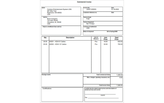 | Commercial invoice | supplier | Declares value |