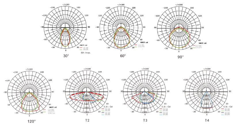 | Beam angle | 120°/140° | 60°/90°/120° | 15°/24°/36°/50°/60° | 5°/10°/30° | 60°/90°/120° | T1/ T2 /T3/T4/T5 |