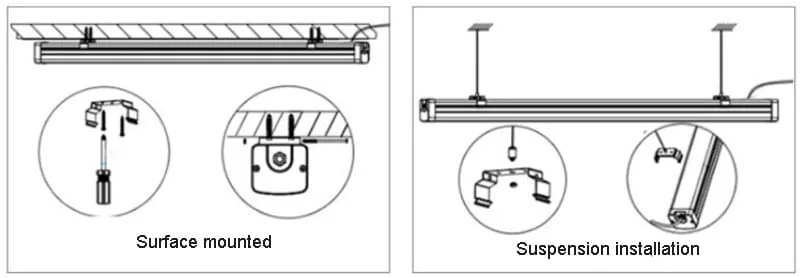 This LED batten fixture can be surface and suspension installation.